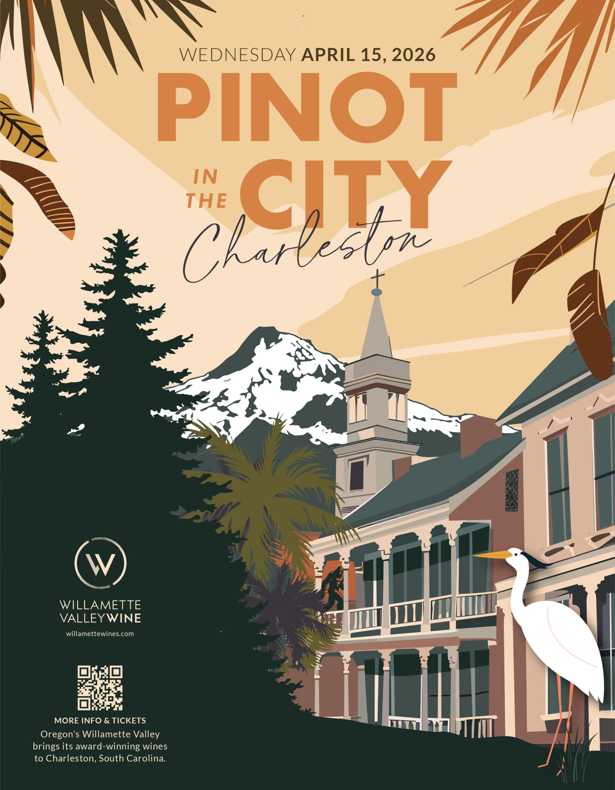 Join us for Pinot in the City Charleston on April 15th at The Cedar Room for a walk-around tasting featuring 40 Willamette Valley wineries showcasing Pinot noir and other cool- climate wines, with charcuterie and small bites included.